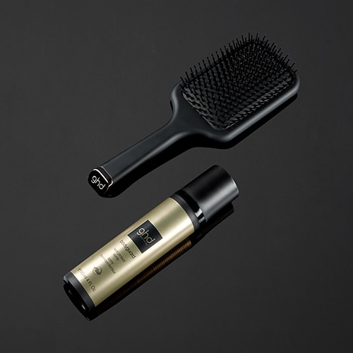 La brosse plate ghd all-rounder et le spray thermoprotecteur ghd bodyguard.